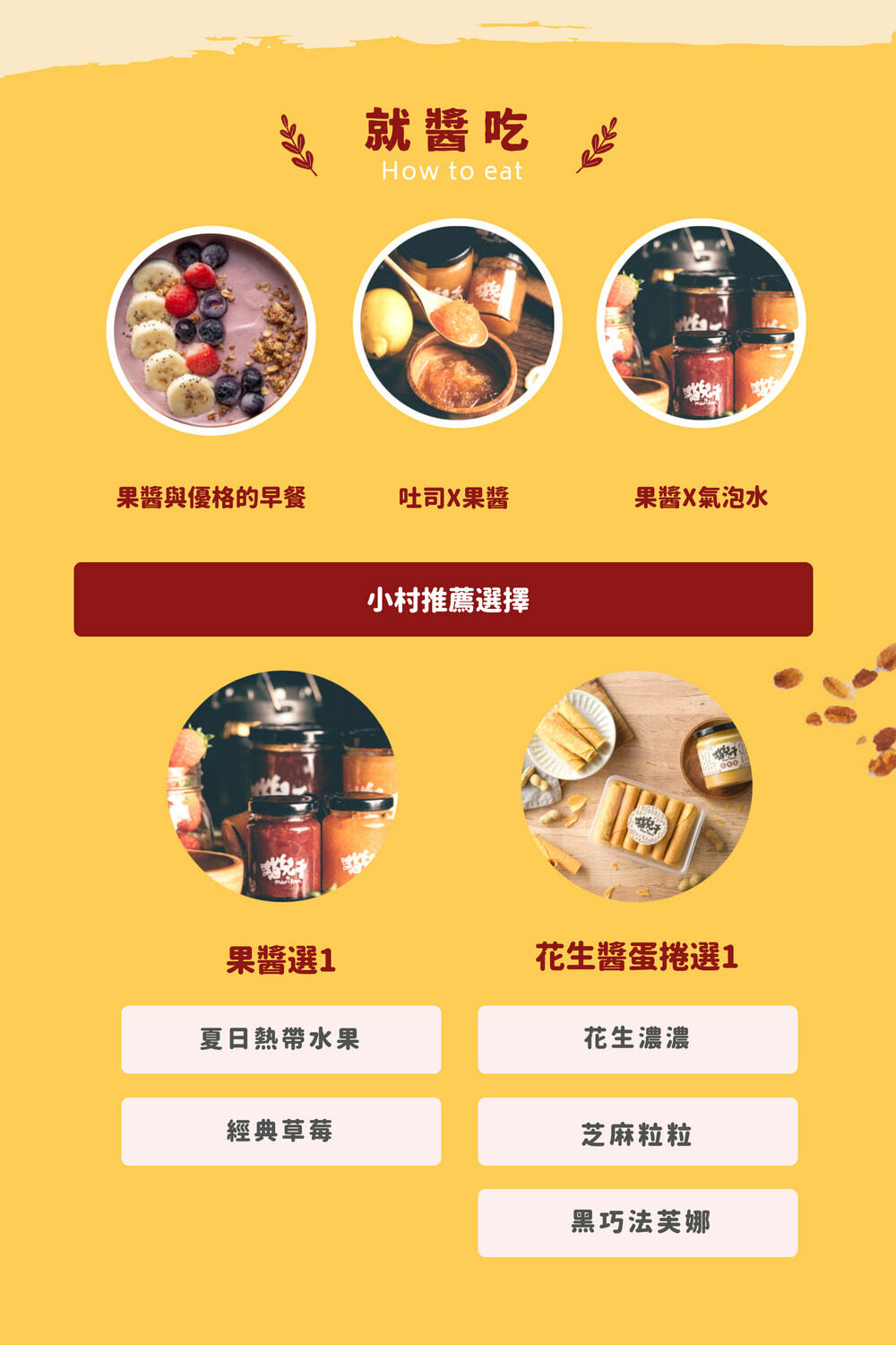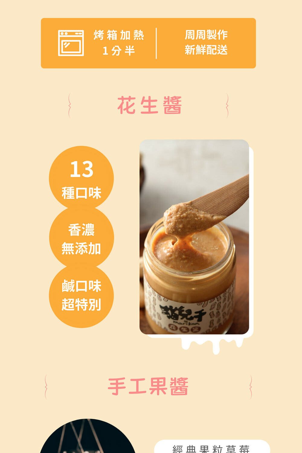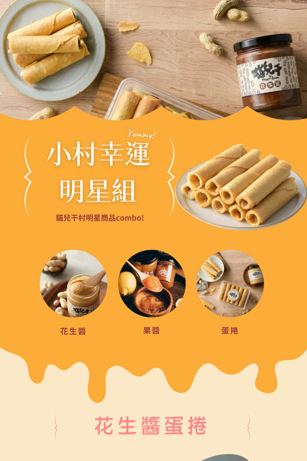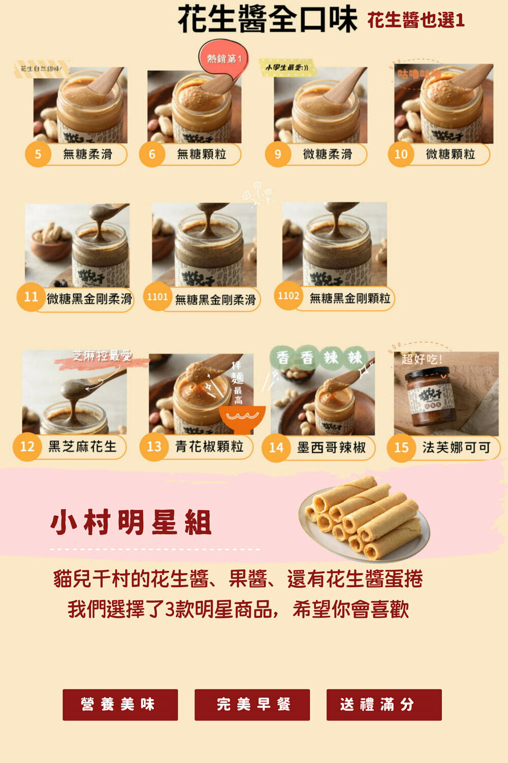 .新鮮現磨 13種口味的花生醬&果醬任選2入+9支裝厚蛋捲任選1入